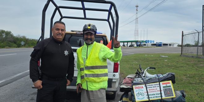Uno de los ciclistas, originario de la India, partió desde Argentina con destino a Canadá, en su paso por México, eligió la frontera tamaulipeca para salir del territorio nacional e ingresar a los Estados Unidos de América.