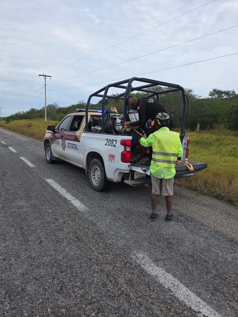 -Un ciclista mexicano y un extranjero se encuentran transitando por carreteras tamaulipecas con el apoyo de la Guardia Estatal