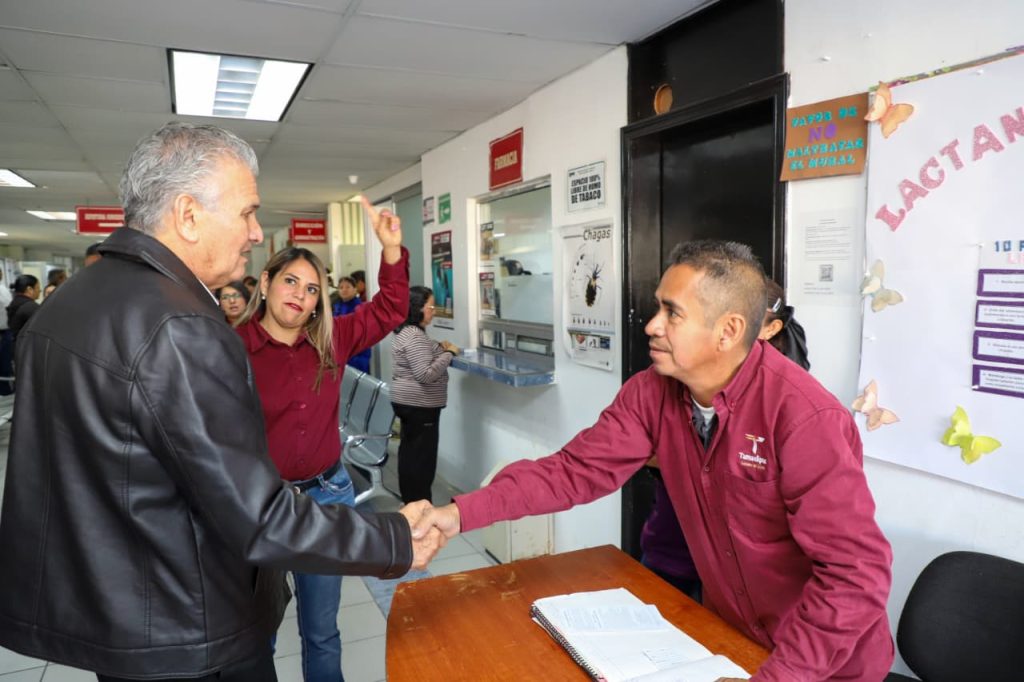 En el recorrido y acompañado por el comisionado estatal para la Protección contra Riesgos Sanitarios (COEPRIS), Mario Rebolledo Urcádiz, intercambió opiniones con las y los trabajadores, atendió pacientes de manera personal y como especialista en traumatología.
