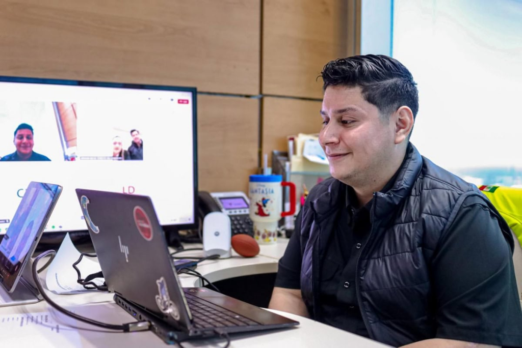 Durante una reunión virtual, el director general del INJUVE, Oscar Azael Rodríguez Perales, y ejecutivos de Santander compartieron impresiones y planes para potenciar las posibilidades laborales de jóvenes tamaulipecos dentro y fuera de México.