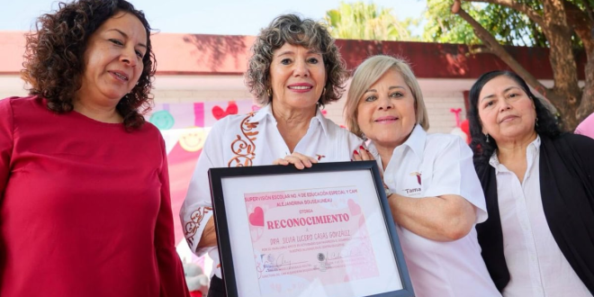 Ciudad Victoria, Tamaulipas.- La comunidad escolar del Centro de Atención Múltiple “Alejandrina Boijseauneau”, hizo entrega de un reconocimiento a la Secretaría de Bienestar Social por las obras realizadas para el mejoramiento educativo dentro del Fondo de Infraestructura Social para las Entidades (FISE).